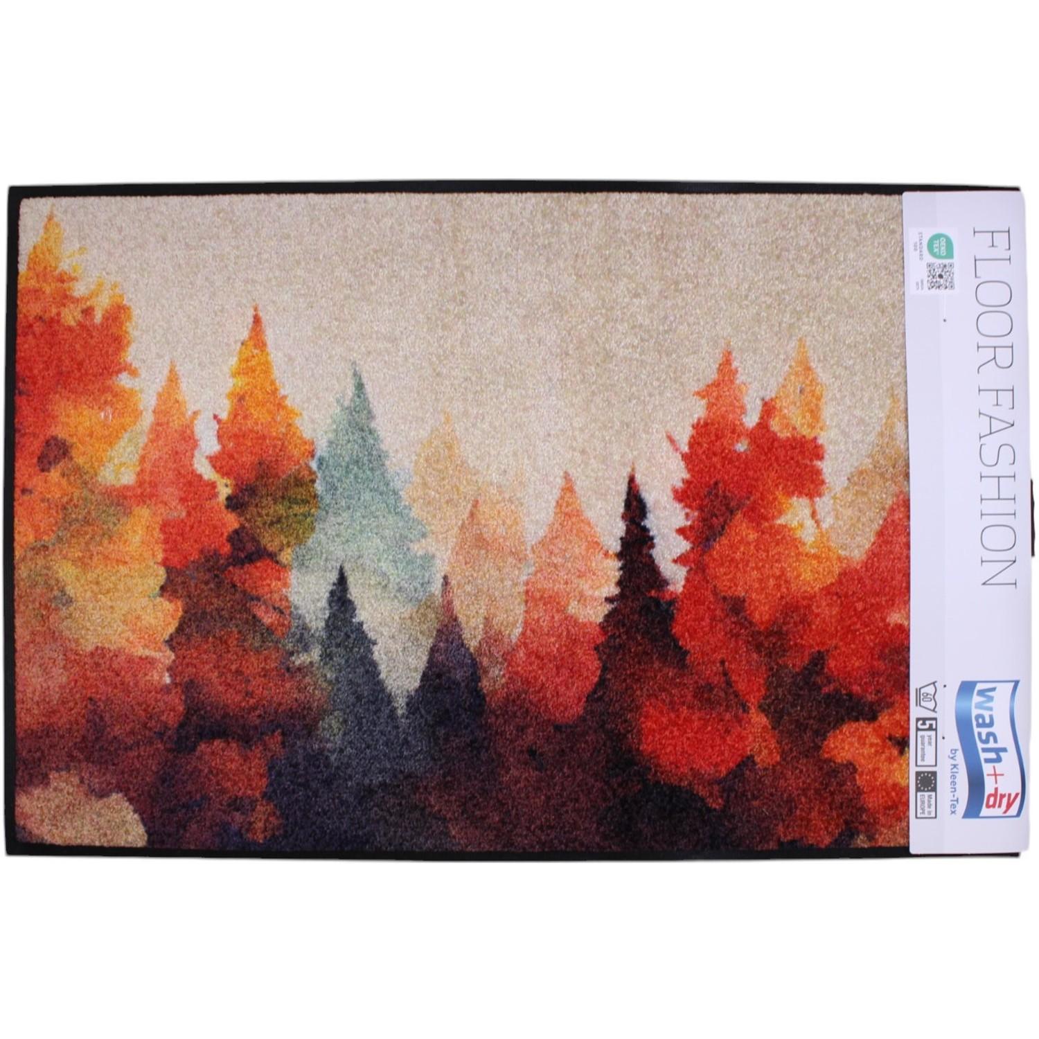 Un tapis aux motifs arbres et magnifiques couleurs d'automne effet aquarelle. Voici une superbe collection de tapis de très bonne qualité avec revers cahoutchouc nitril et lavables en machine pour la maison , aux motifs variés plutôt montagne, moderne ou classique. Garantie 5 ans.