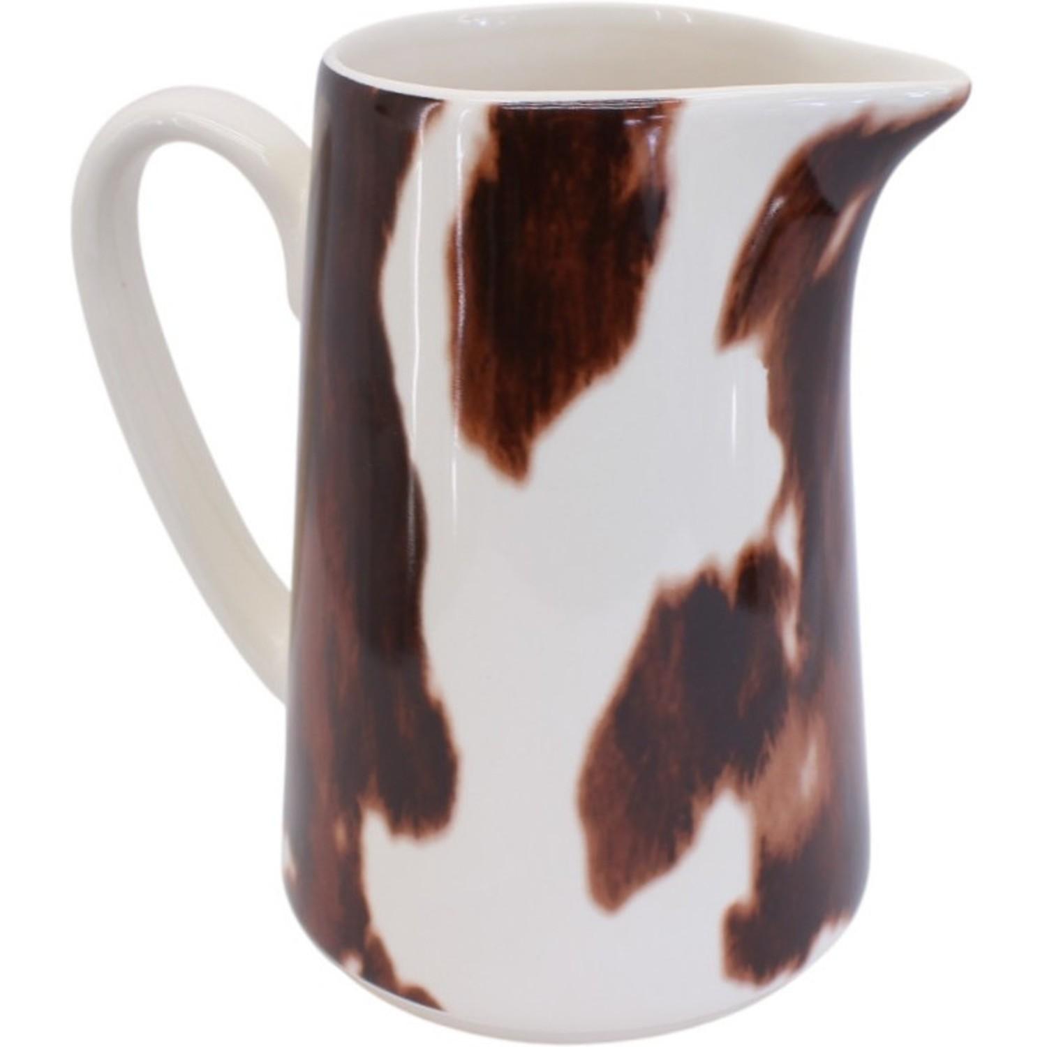 Très beau pichet avec anse, une belle collection nommée Abondancce , une vaisselle en céramique blanche imprimée motif peau de vache marron et blanc.