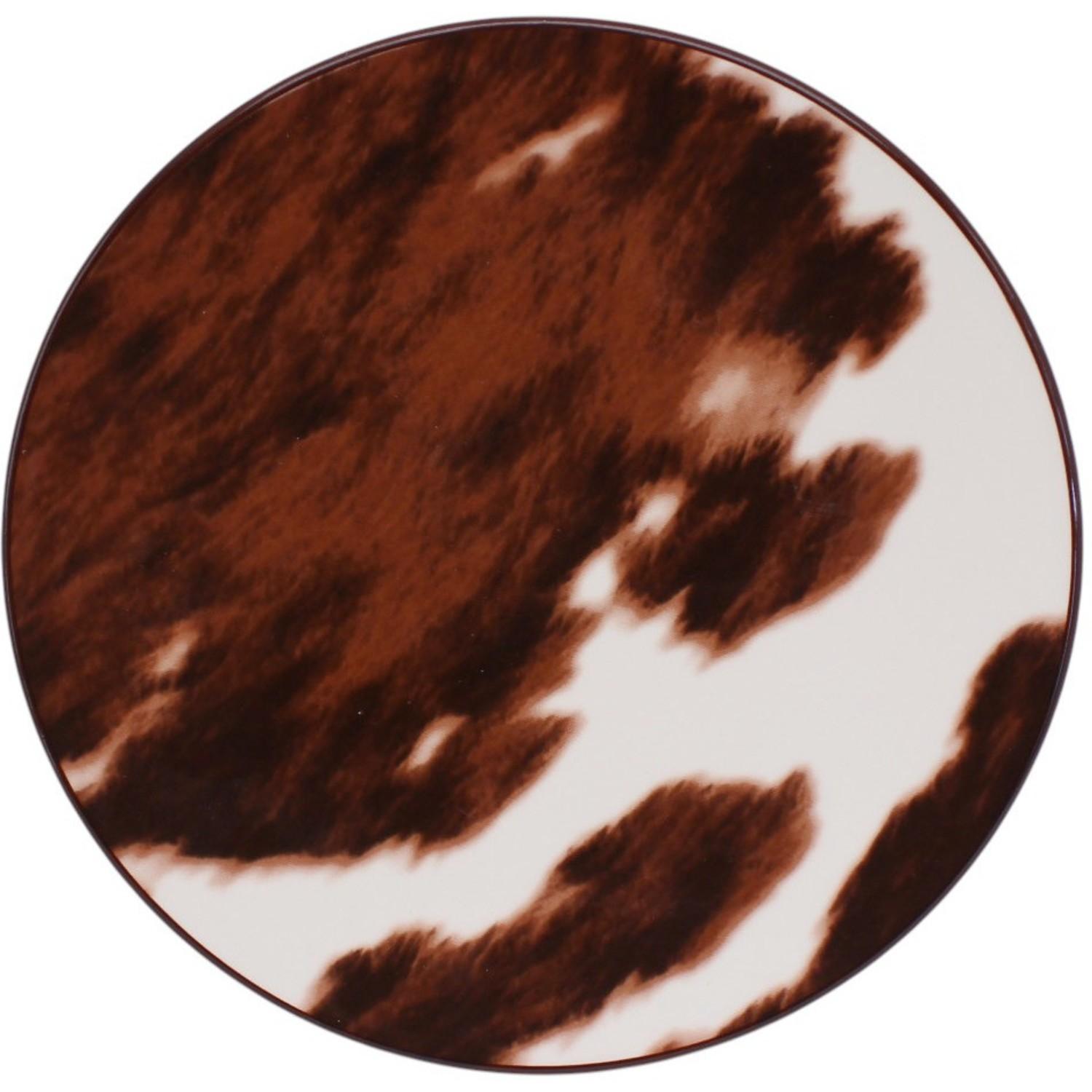 Jolie assiette dessert, une belle collection nommée Abondancce , une vaisselle en céramique blanche imprimée motif peau de vache marron et blanc.