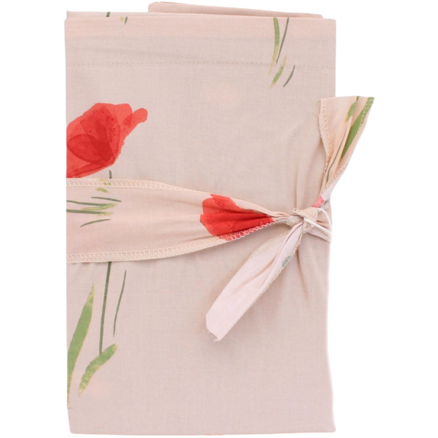 Jolie taie en percale de coton avec d’un côté, de jolis coquelicots d'un rouge profond sur unfond rose doux et de l’autre, de petites pâquerettes viennent s'inviter sur un fond kaki.