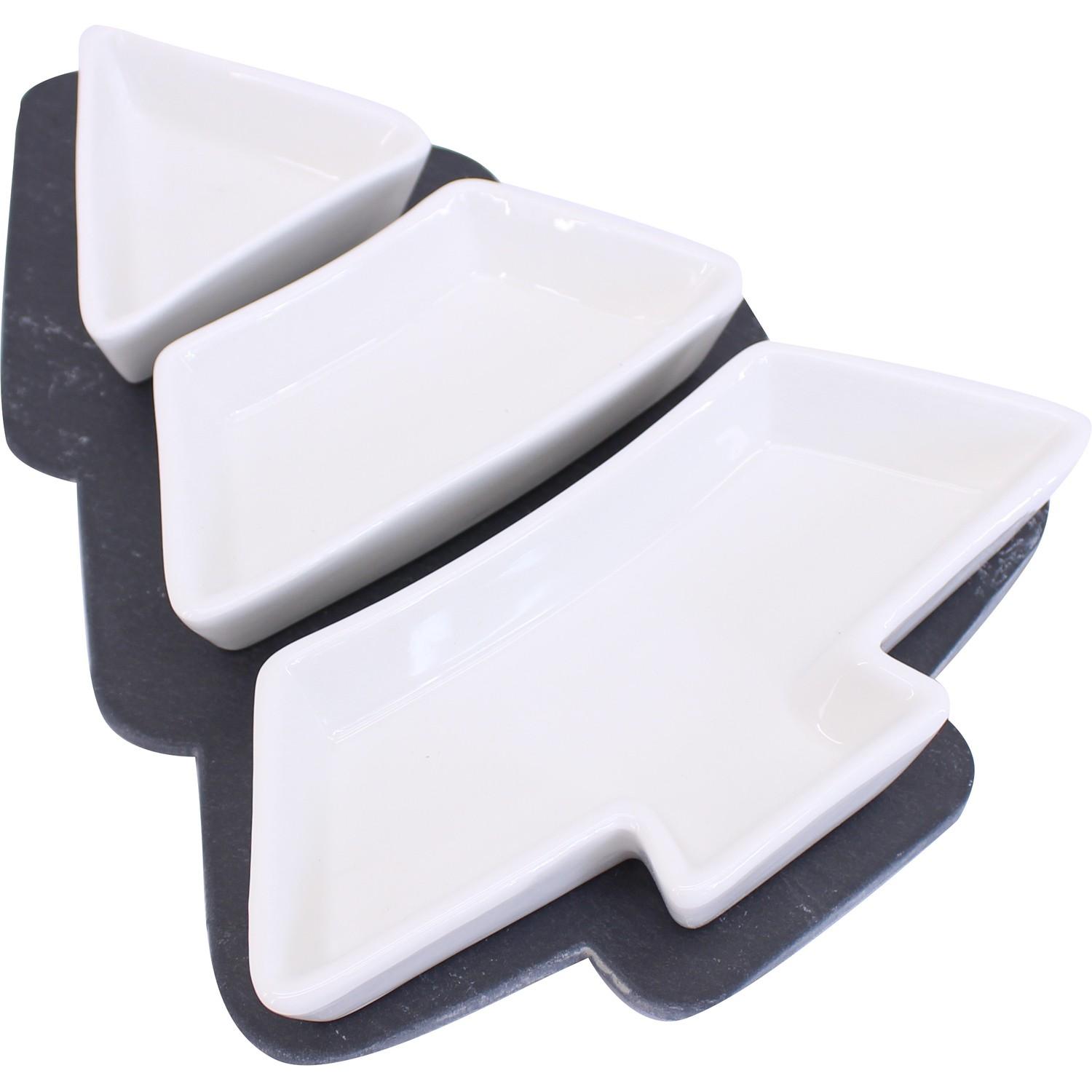 Set 3 ciotoline con tagliere in ardesia a forma di abete