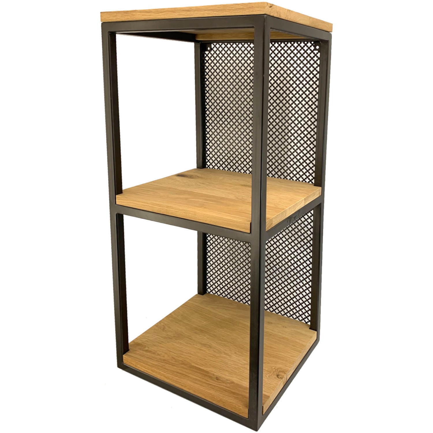 Un elegante modulo pensile in metallo e rovere massello da fissare al muro, perfetto per sistemare libri o oggetti decorativi.