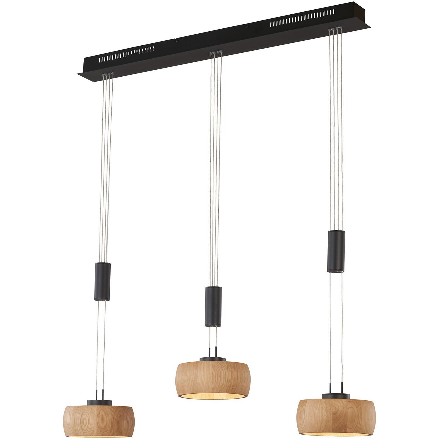 Linee pulite, mix di metallo nero e vero legno: questo lampadario a 3 luci porta immediatamente un tocco nordico e di montagna moderna al tuo soggiorno, alla sala da pranzo o all’ingresso di uno chalet. La barra in metallo sostiene tre paralumi in legno naturale, tutti regolabili in altezza da 100 cm fino a 160 cm: decidi tu il gioco di livelli per creare l’atmosfera perfetta.
