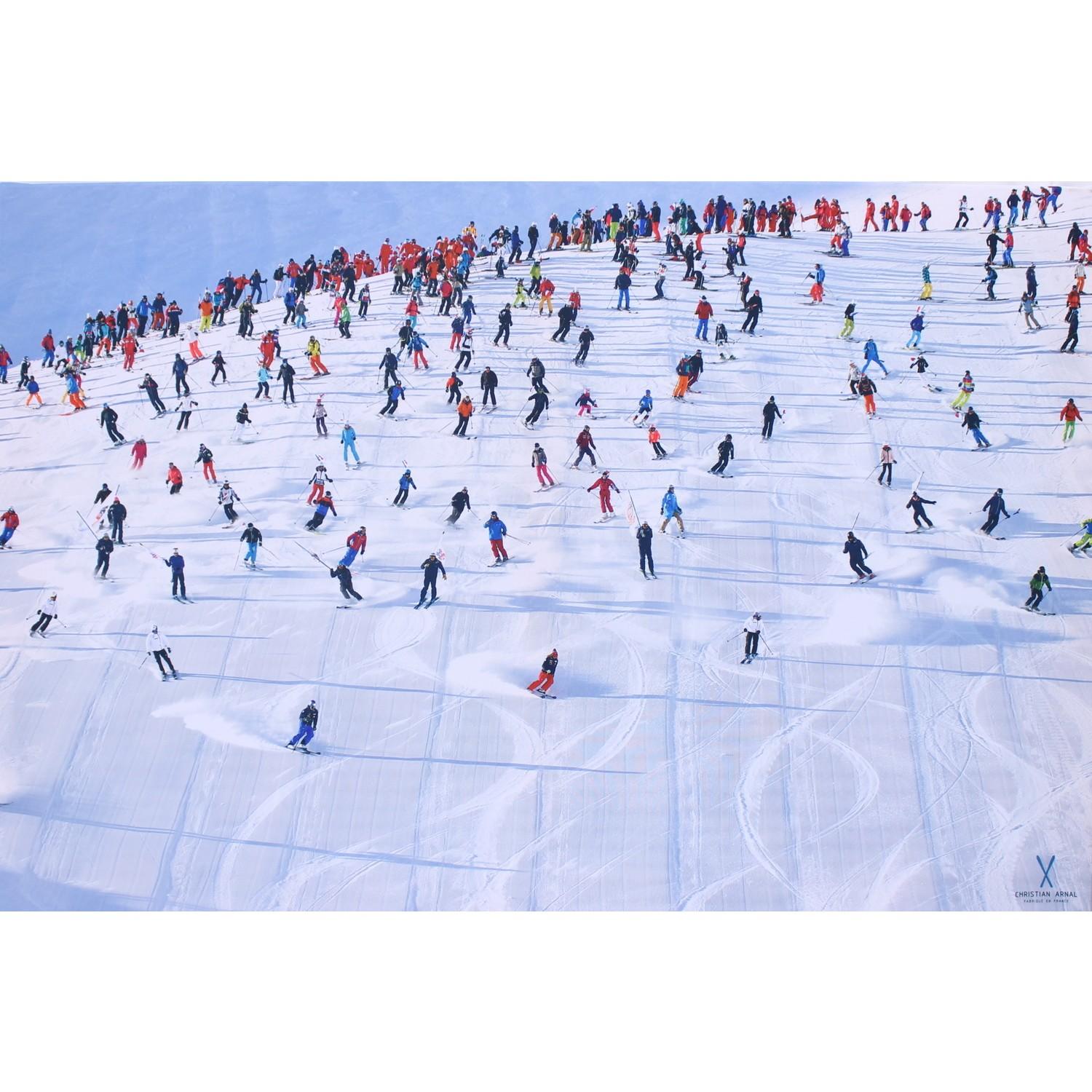 Porta a casa l’atmosfera delle prime piste innevate con questo quadro moderno firmato Christian Arnal. L’intero gruppo di sciatori si lancia insieme sulla discesa, regalando movimento e autenticità alla tua zona living o al tuo chalet.